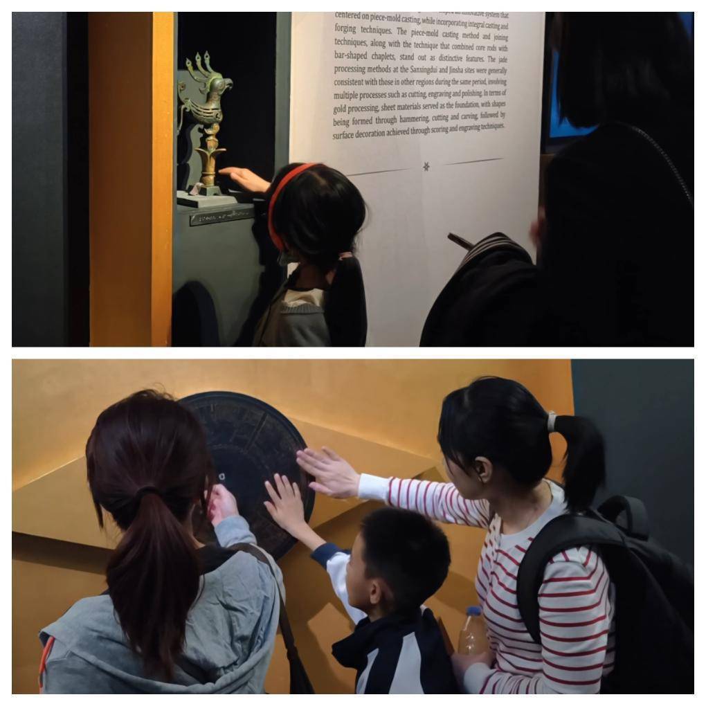 与此同时,国博另一热门展览“双星耀世——三星堆—金沙遗址古蜀文明展”也有不少人性化设计。展览特别设置盲文介绍、可触摸展品、NFC感应、语音导览等,确保包括残障人士在内的观众均能多维度感知古蜀文明的辉煌与温度。