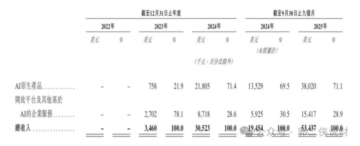 2025年前三季度,AI原生产品贡献了71.1%的收入,其中海螺AI占32.6%,Talkie/星野占35.1%,语音工具占2.0%,大语言模型MiniMax占1.4%。这一收入结构反映出公司以C端产品为主导的商业化策略。